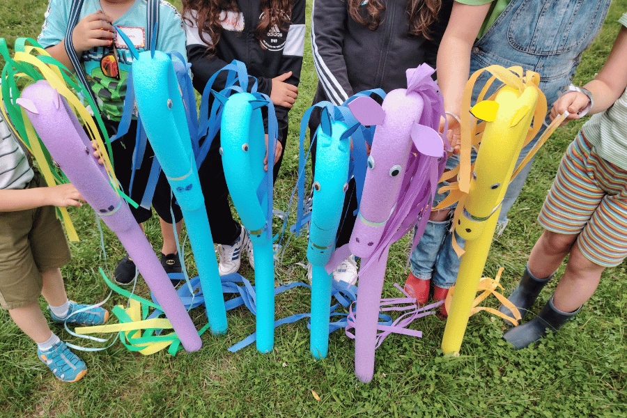 Ein Highlight waren die selbst gebastelten Pferde aus Poolnudeln, die sofort auf dem weitläufigen Gelände Probe geritten wurden. Wer wollte, konnte zwischendurch bei einem Snack neue Kräfte tanken – mit Stockbrot, frischen Crêpes und andere Leckereien.
